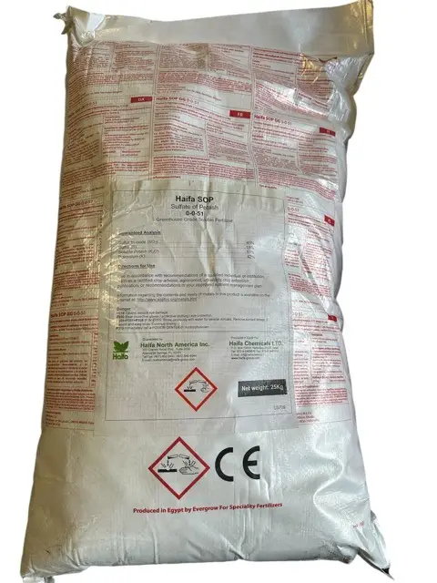 The SOP Sulfate of Potash Soluble Fertilizer 0-0-52 is a must-have for farmers and gardeners seeking a high-quality, nitrogen-free potassium source. With its fully water-soluble formula and balanced nutrient composition, it ensures strong, healthy plant growth while preventing common irrigation system issues. We may ship any brand of SOP Sulfate depends on availability.
